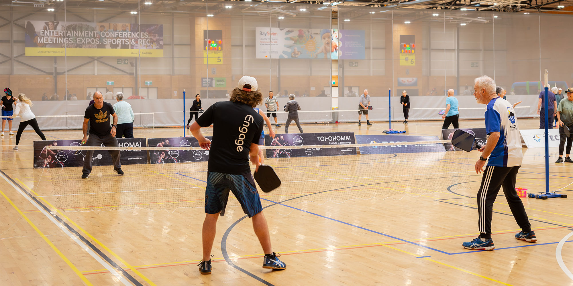 All players are welcome to The Mount Pickleball Club. Pickleball combines elements of tennis, badminton, and table tennis for an incredible form of aerobic exercise! The game is played on a badminton size court, traditionally with two (singles) or four (doubles) players. Come join us for a hit at The University of Waikato Sport & Recreation Centre at Mercury Baypark or at The University of Waikato Haumaru Sport & Recreation Centre at 483 Cameron Road, Tauranga.